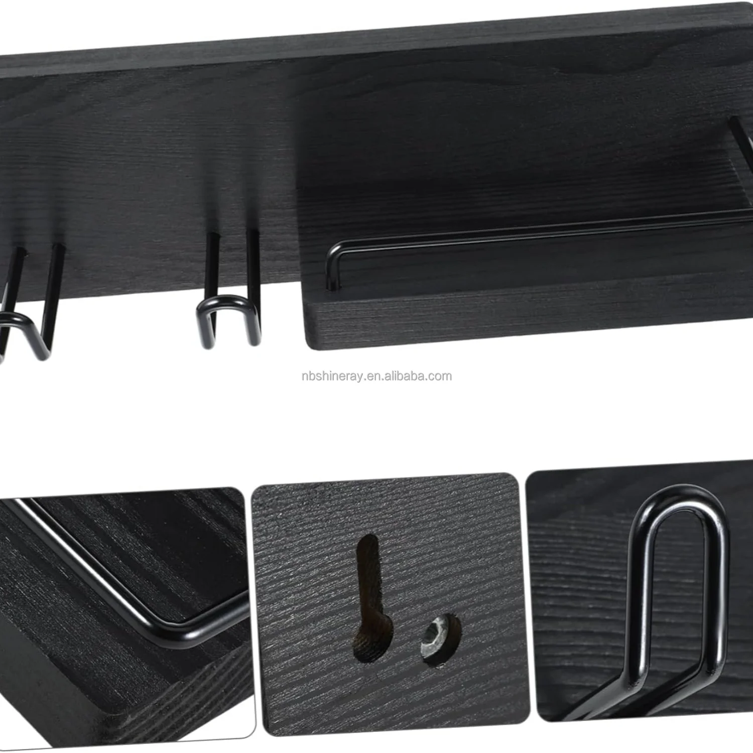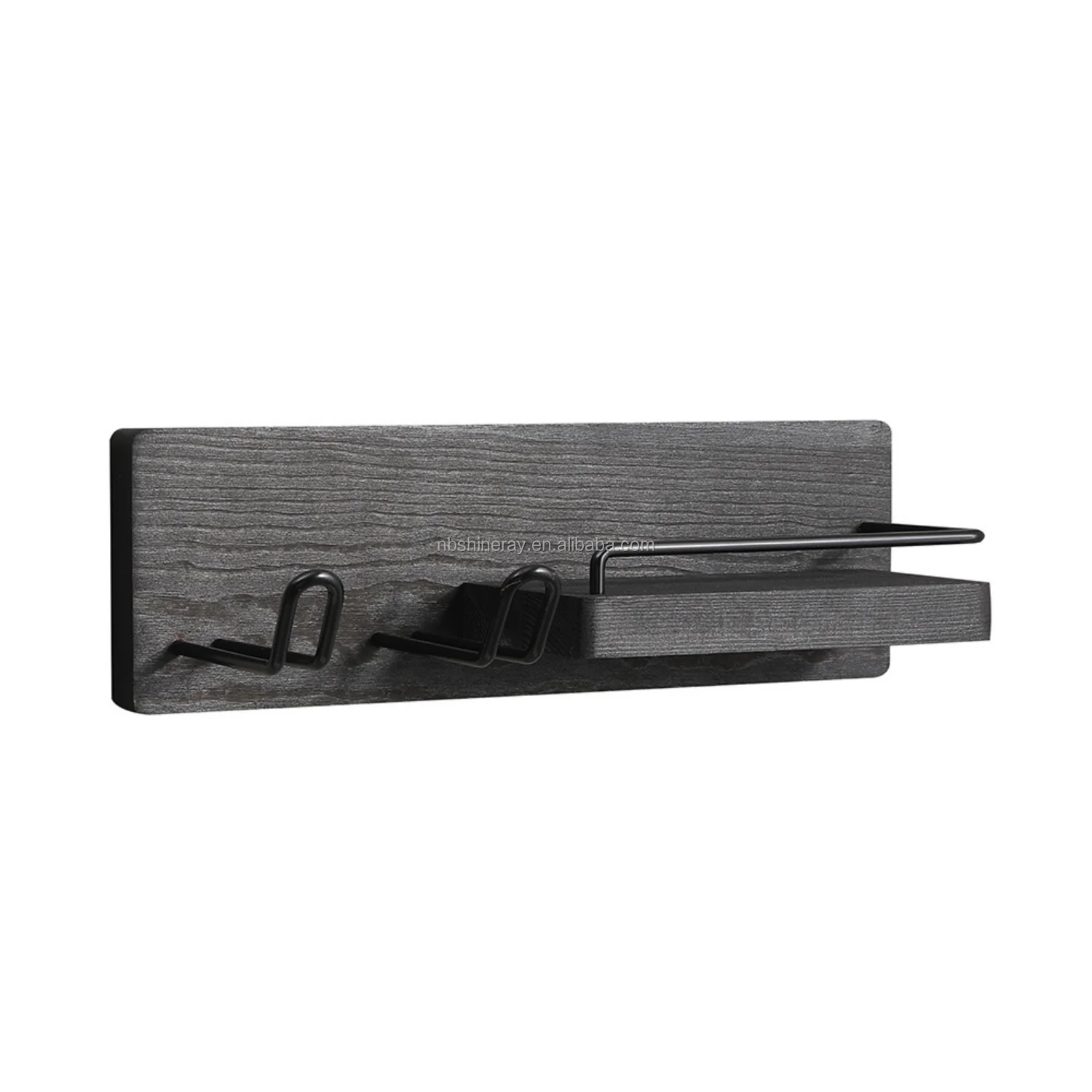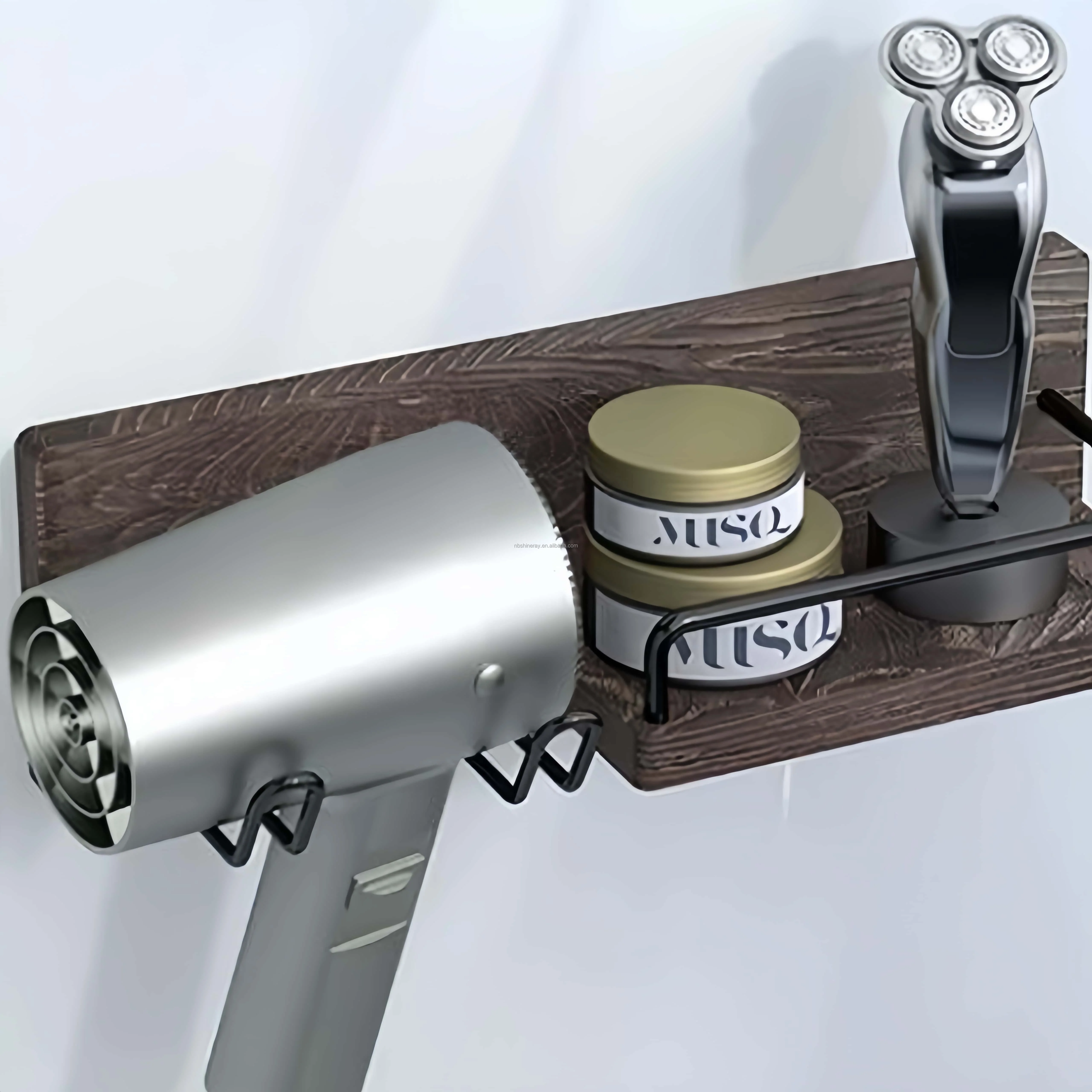 Wall-Mounted Modern Multifunction Hair Dryer Holder Rack Sturdy Storage Organizer Space-Saving Design Easy Clean Wooden Shelves